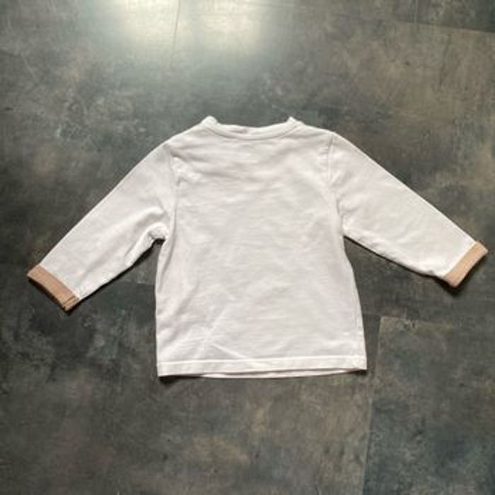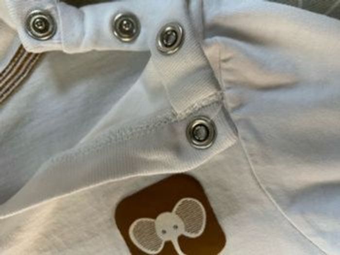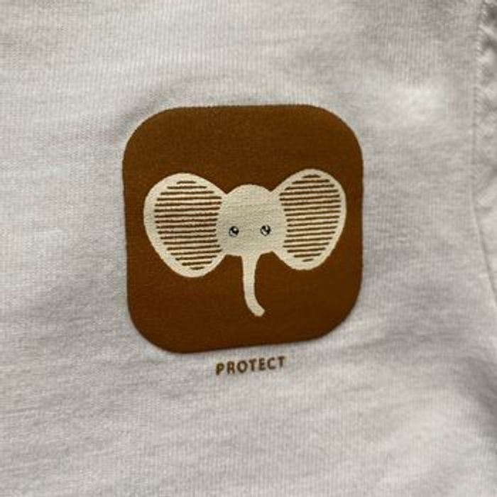 Joli t-shirt blanc et marron Manches longues avec revers milleraies 100% coton éléphant éléphanteau poitrine Taille 12 mois 74 cm Obaibi