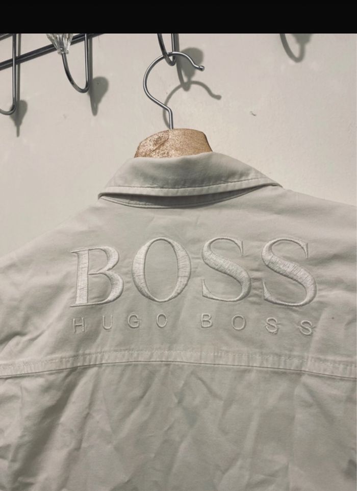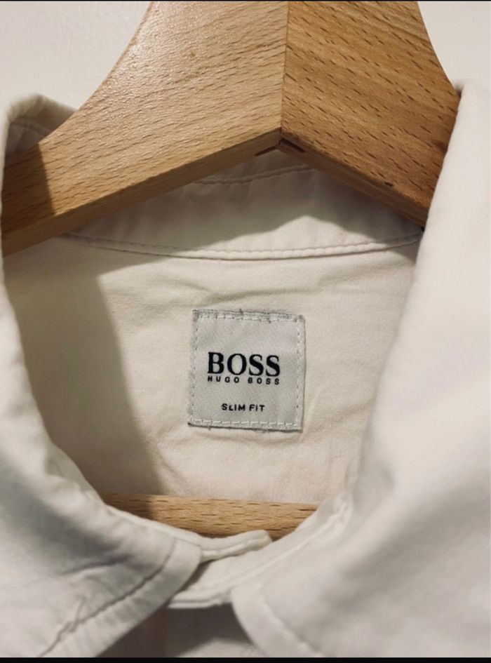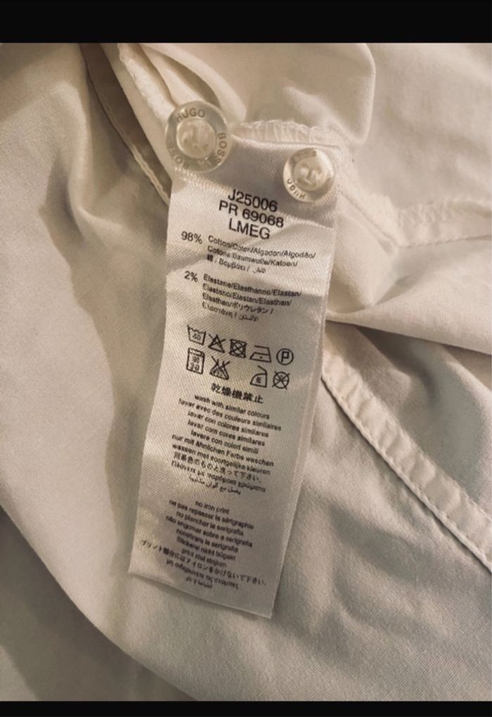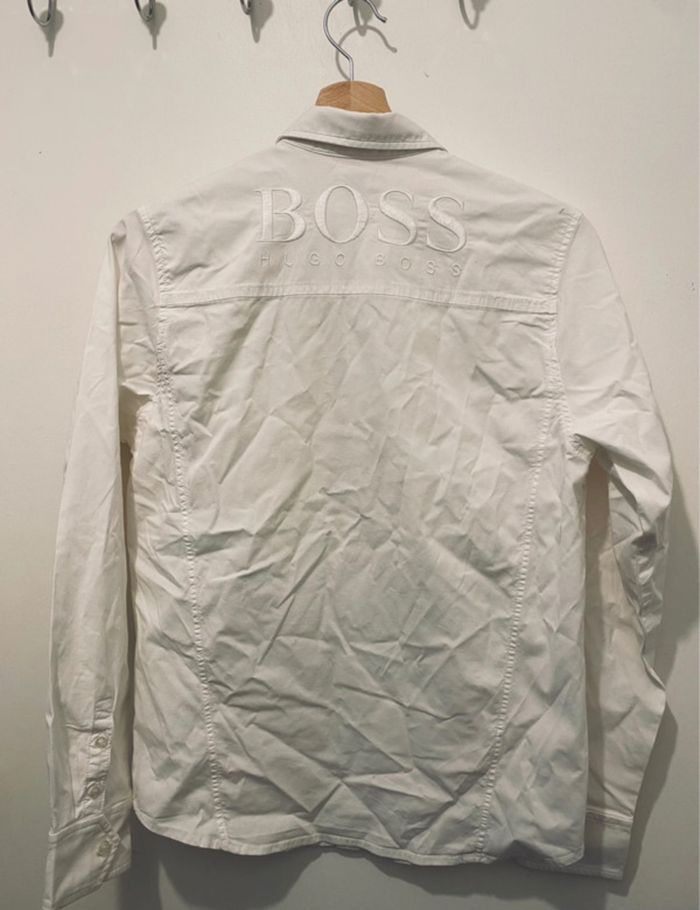 🌼Parfaite pour un look chic et élégant . Belle coupe, confortable et stylée. 📌 Marque : Hugo Boss 📏 Taille : 14 ans 🎨 Couleur : blanc 👔 Coupe slim fit 🧵 Détails : écriture Hugo Boss brodé au dos 👔 2 boutons de secours