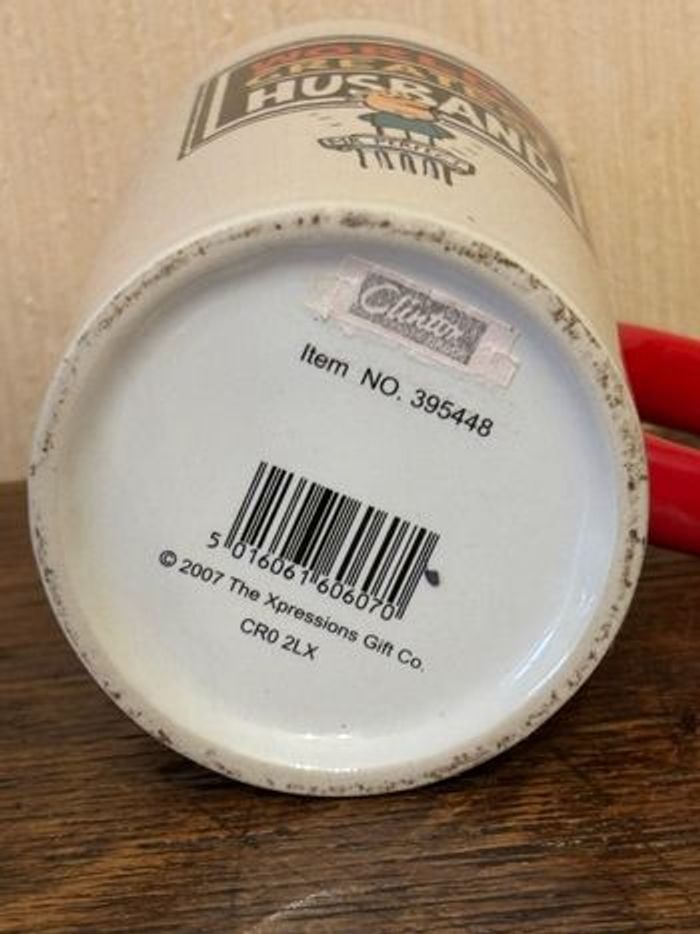 Vends rare tasse (Mug) « World’s Greatest Husband » 2007 Sous licence The Expression Gift Co Avec anse sur lequel est inscrit « Mr Perfect » Long texte en anglais sur la seconde face : « YES IT'STRUE! I AM THE WORLD'S GREATEST HUSBAND I AM JUST MR PERFECT. I AM MR SMASHING. I AM MR LOVELY BLOKE. IT MUST BE TRUE.. MY WIFE SAYS SO. » En céramique Hauteur 11,5 cm env. Diamètre 7 cm env Tasse rare à la vente. Tasse en excellent état, n’ayant jamais été utilisée (présence d’une étiquette au fond). Était dans une vitrine. Maison non fumeur et sans animaux. Vendu 10€