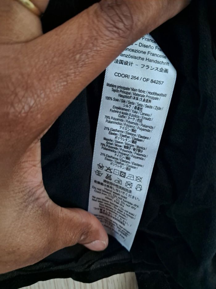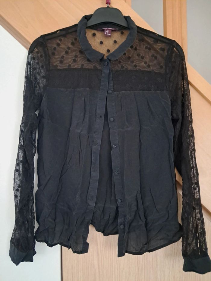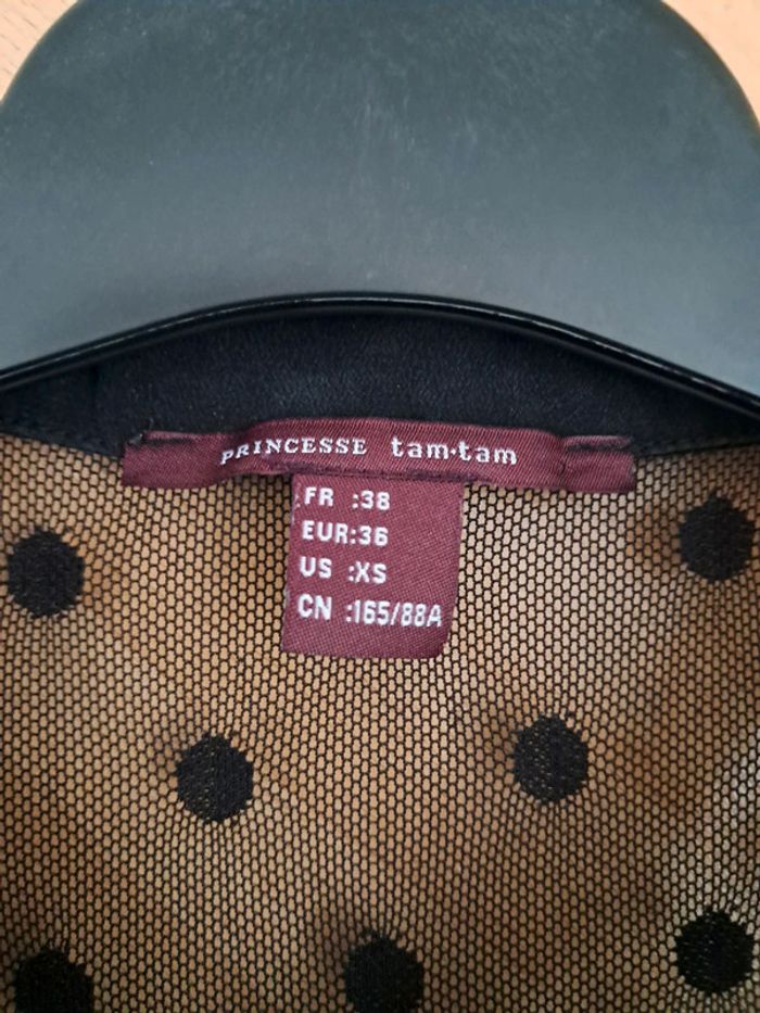 Chemisier à pois noirs, avec les manches transparentes. Taille 38, marque princesse tam tam. Très bon état.
