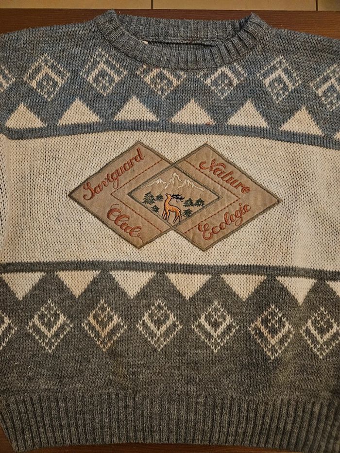 Pull taille 8 ans. Attention ⚠️ pull assez ancien donc d'occasion et présente des petits défauts (voir photos)
