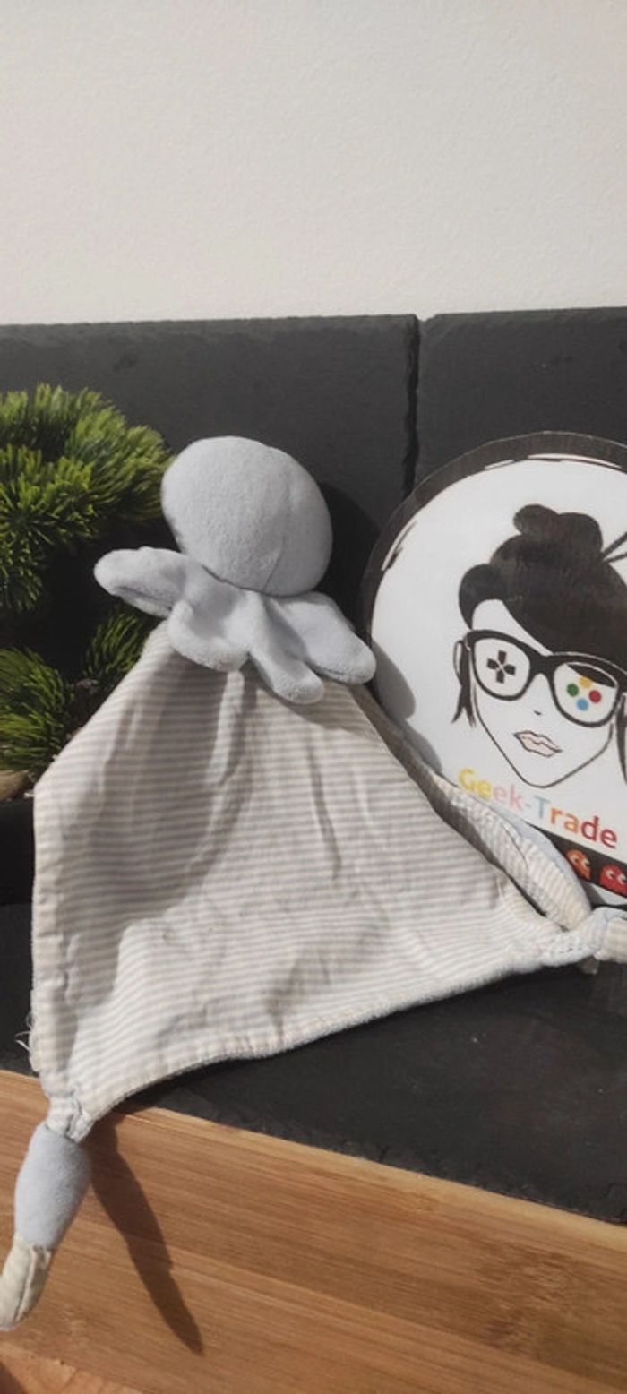 Doudou Pieuvre Octopus Plat Bleu early day primark rayé gris blanc cocard - photo numéro 1