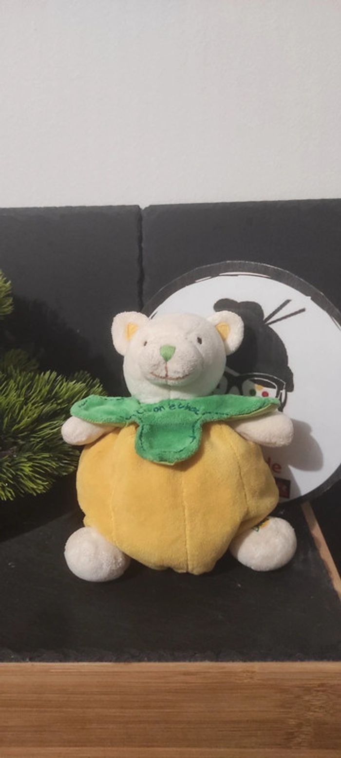Doudou peluche citron le chat baby nat vert jaune blanc boule - photo numéro 1