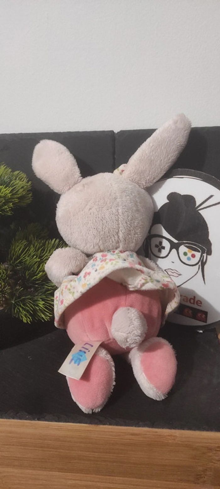 Tex Auguste peluche lapin rose robe fleur oiseau doudou noeud Crème Beige Vert