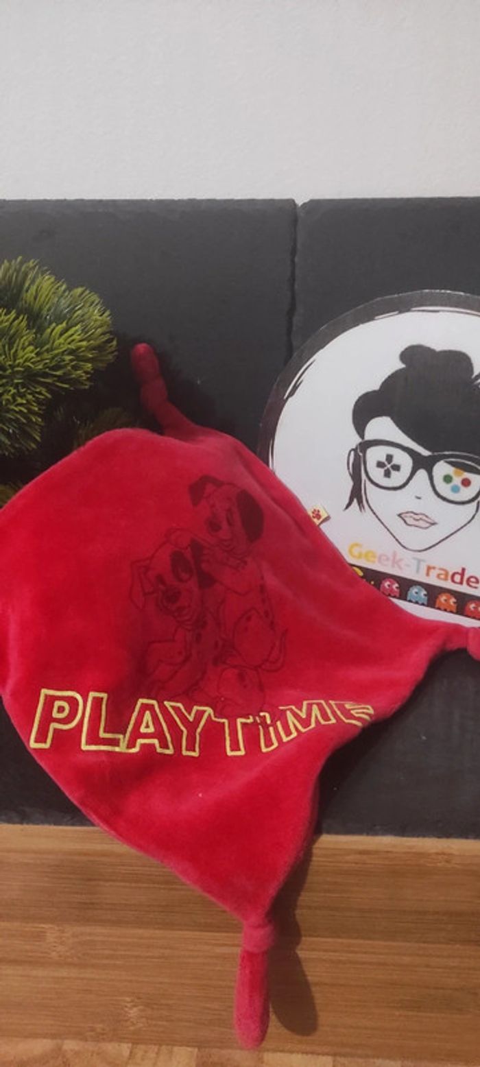 doudou mouchoir diney chien dalmatiens rouge jaune playtime carré plat noeud chiot