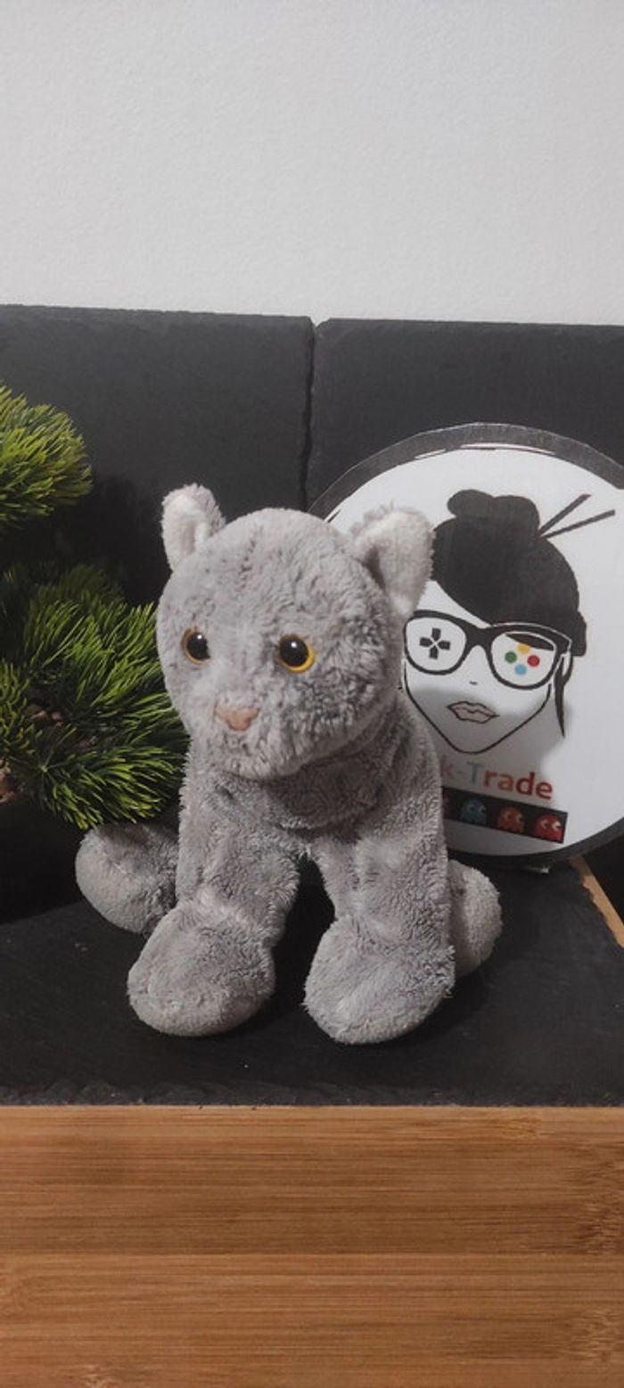 peluche doudou chat ancien gris yeux bille jaune nez rose ancien vintage - photo numéro 1
