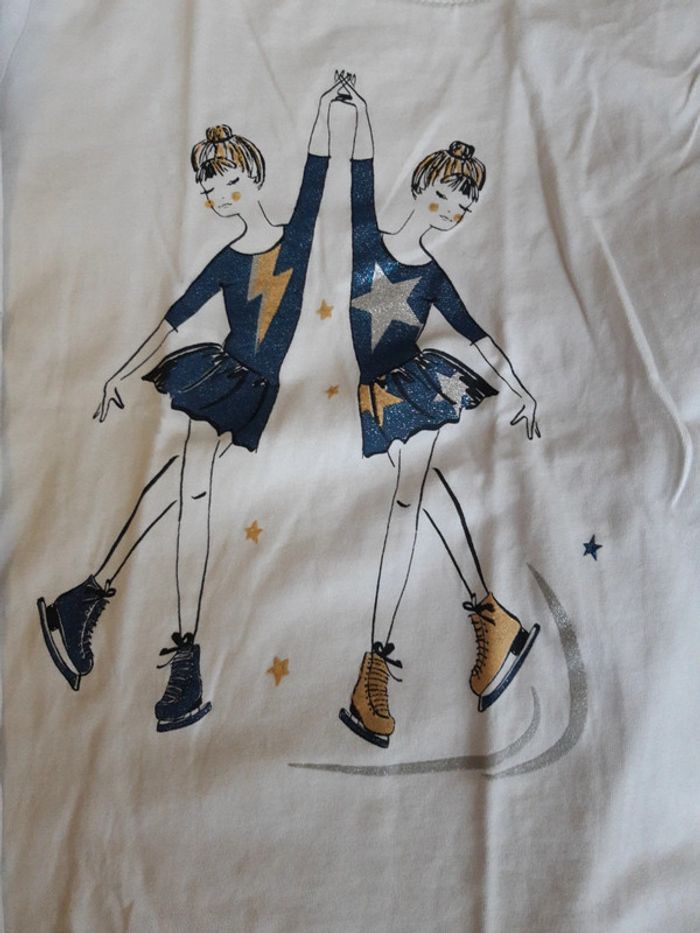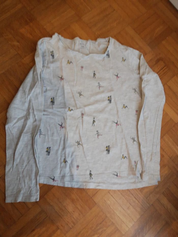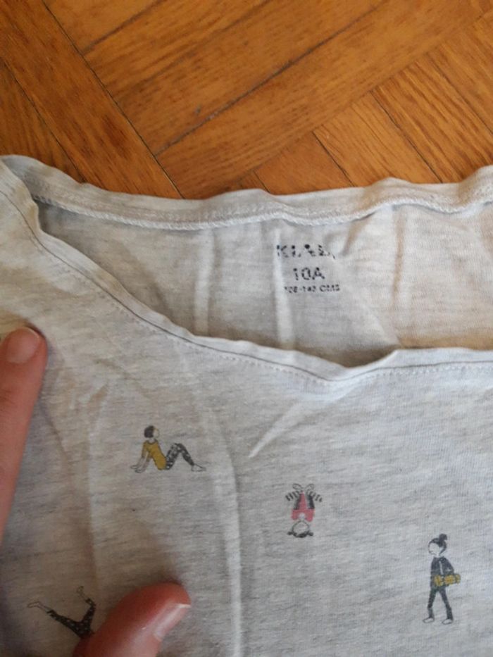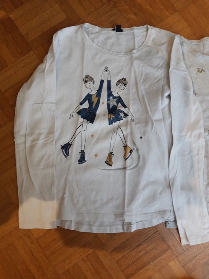 Lot 2 t-shirts manches longues 10 ans Kiabi 1 très bon état danseuse patineuse crème 1 bon état personnage gris #10anscatalina8