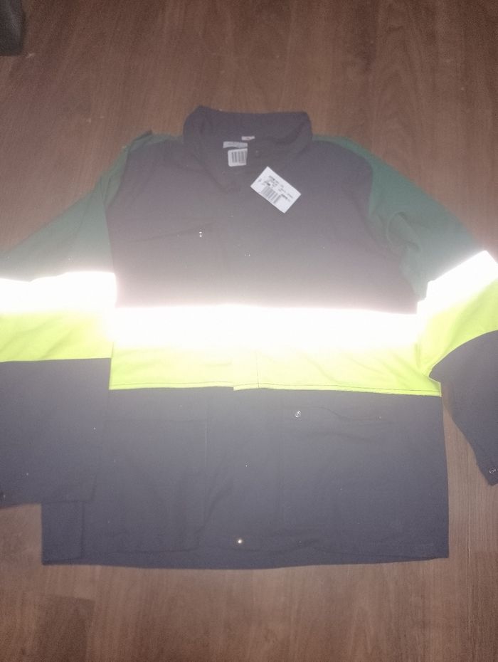 Veste de travail réfléchissante MOLINEL neuve 70 euro pièce - Taille 4 elles mesurent 58 cm sous les bras jusqu'au poignée, - 48cm du dessous de bras jusqu'en bas (longueur) 68 cm jusqu'à chaque dessous de bras - Avec 2 grandes poches à pression et 1 grande en haut - Avec bande réfléchissante tout le tour et au niveau des bras - 2 poches intérieures 1 de chaque côté (1 avec pression et l'autre a scratch) - 2 bandes avec scratch au niveau des épaules - Col légèrement montant fermer par 1 pression - Pressions au niveau des poignée réglable 2 tailles Vendu en l'état