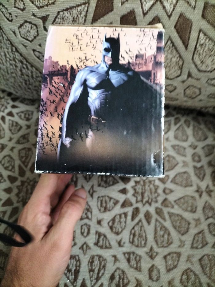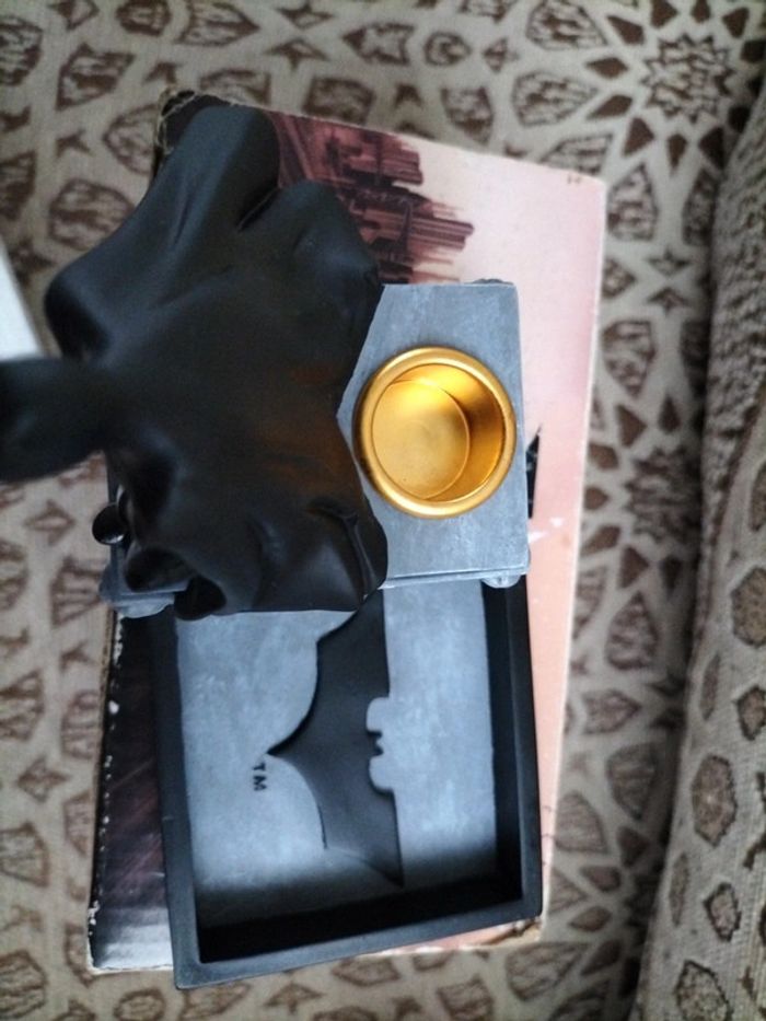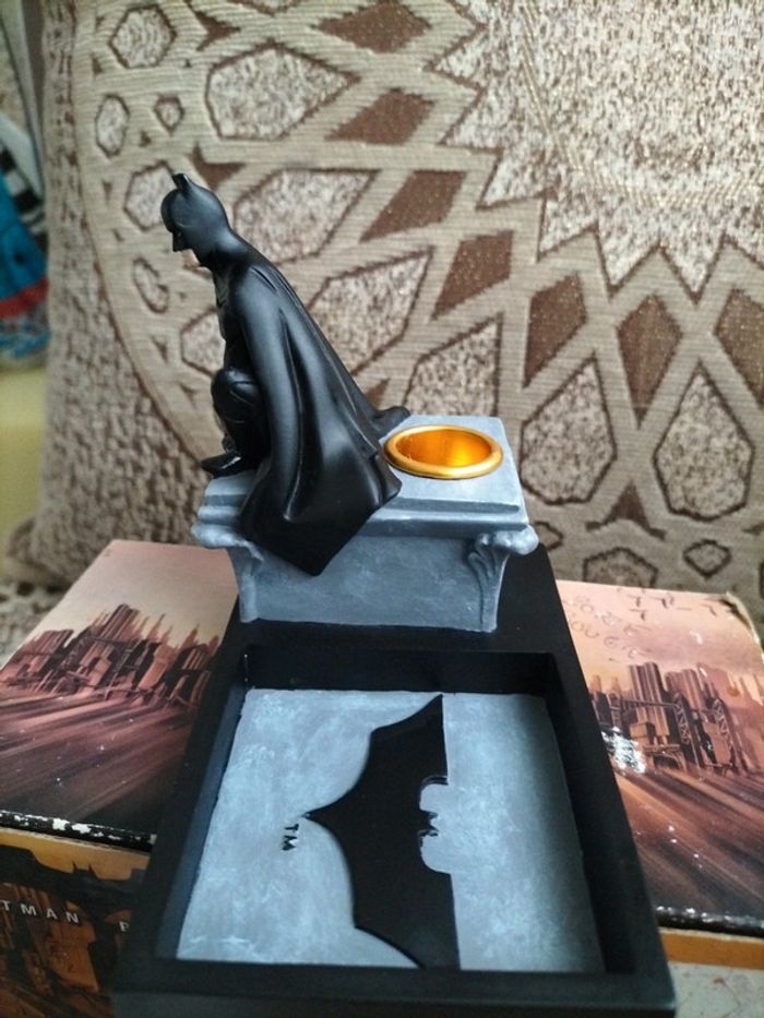 Personnage bâtman avec porte bougie et compartiment pour post-it.(s05) Boite abîmée pendant le stockage (usée).