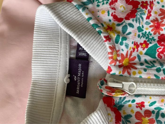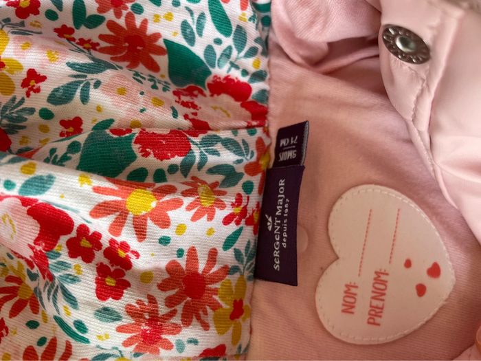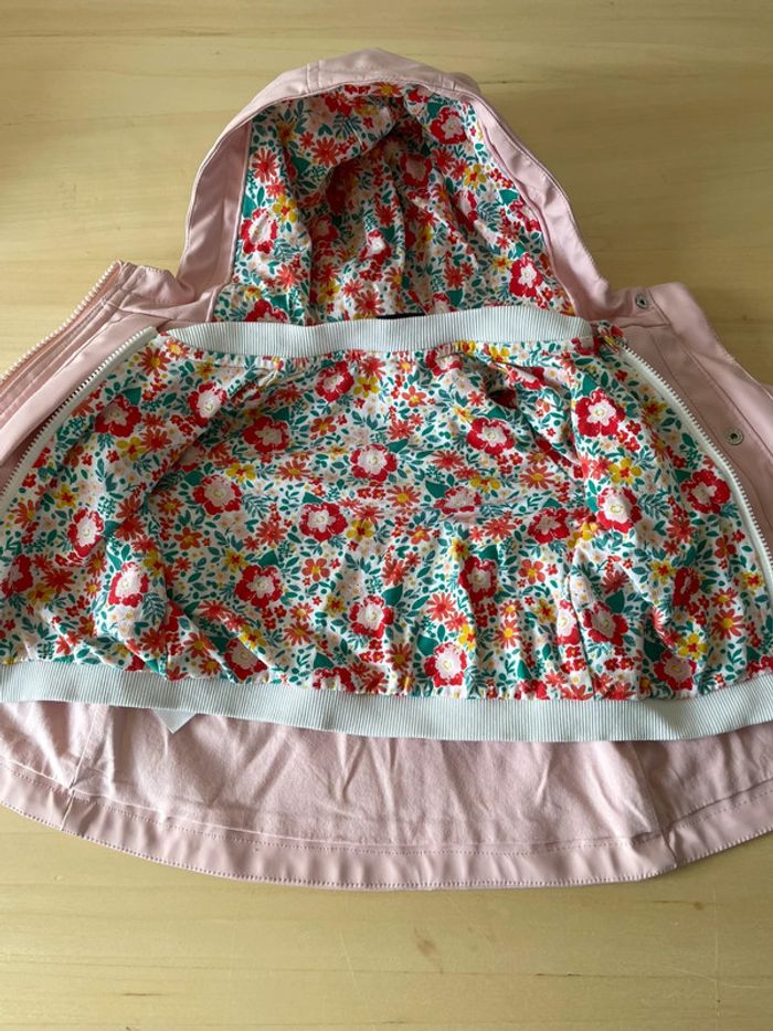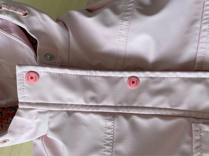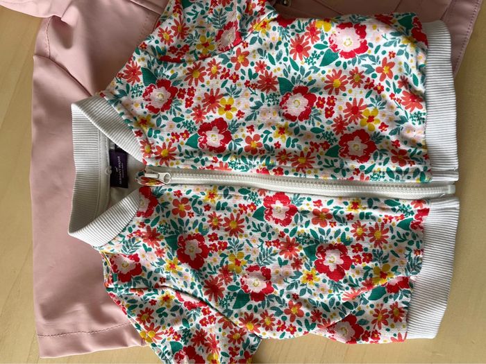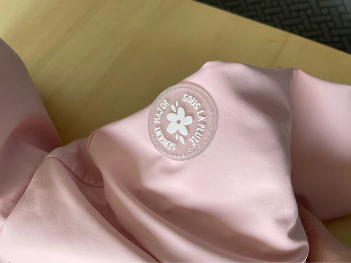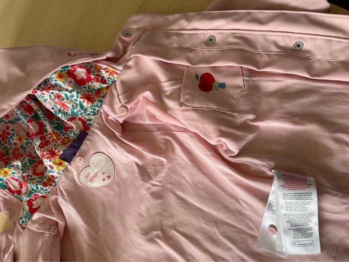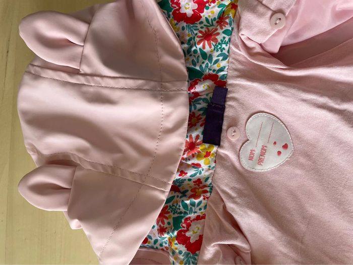 Superbe imperméable Sergent major Rose clair Avec bombers à motif pouvant servir de doublure au manteau (voir photos) Taille 9 mois, excellent état !