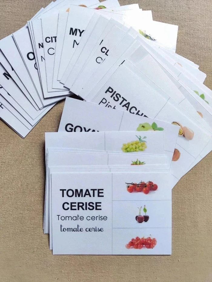 46 cartes à pince fruits avec différentes écritures Très bon état - photo numéro 3