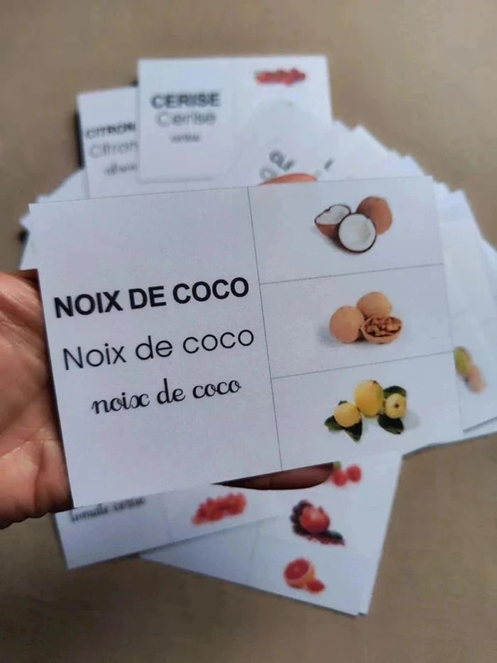 46 cartes à pince fruits avec différentes écritures Très bon état - photo numéro 1