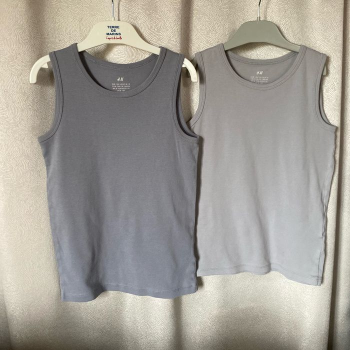 2 t-shirt gris sans manche 9/10 ans 134-140 cm H&M 100% coton