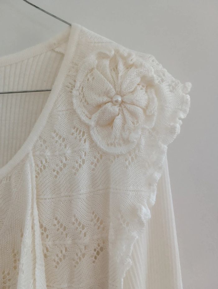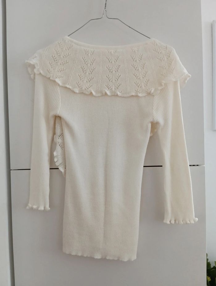 Pull vintage côtelé crème col dentelle - photo numéro 3