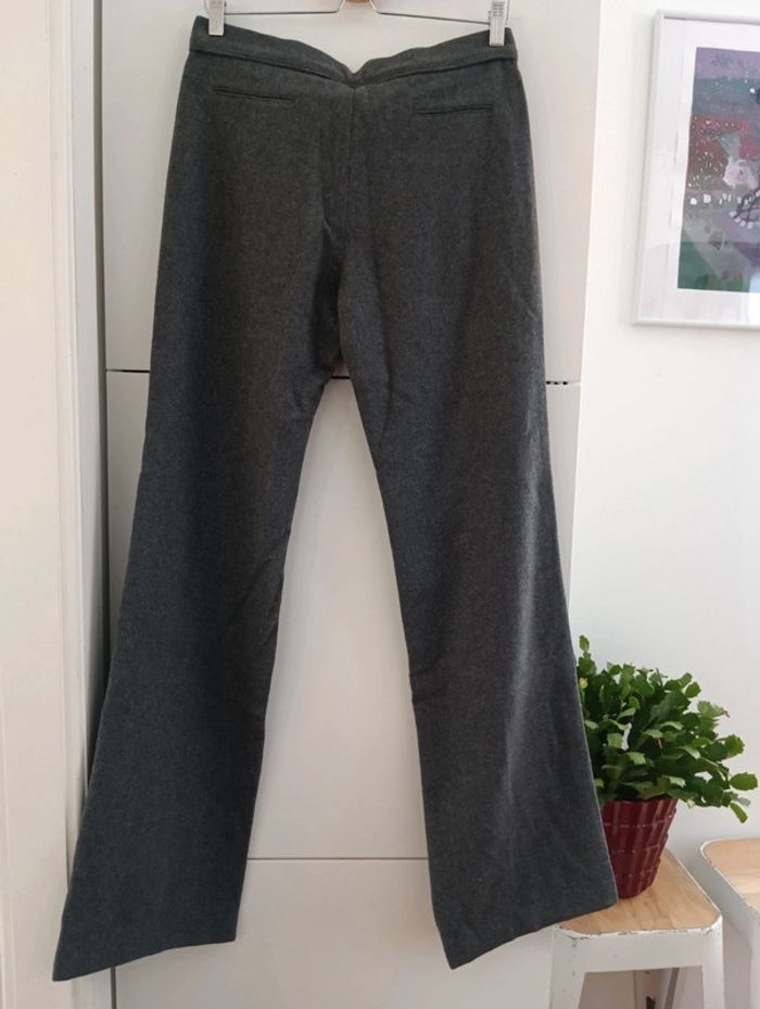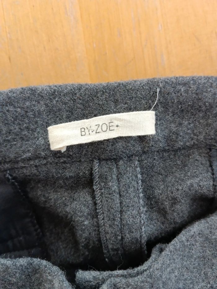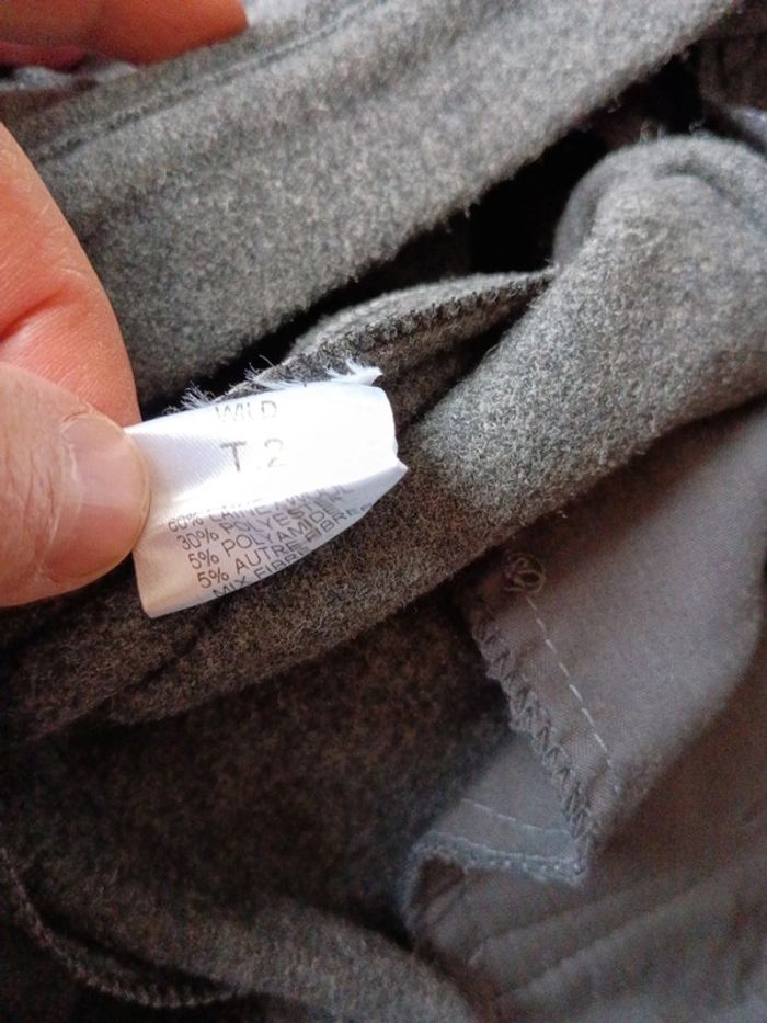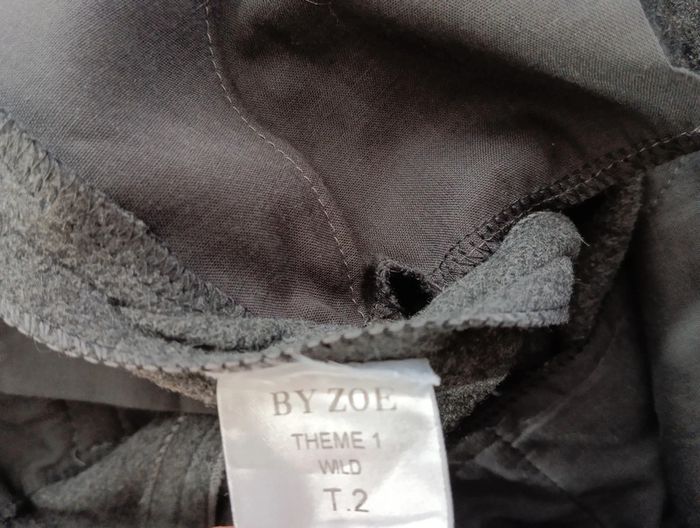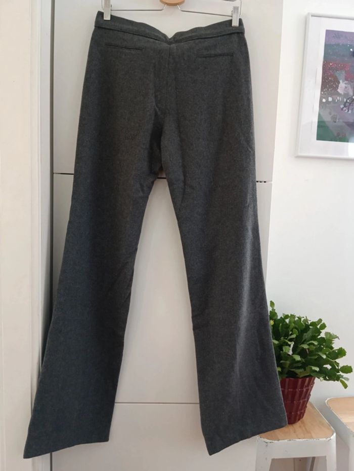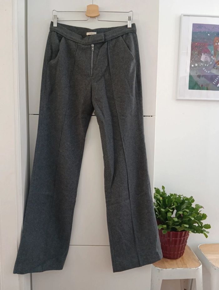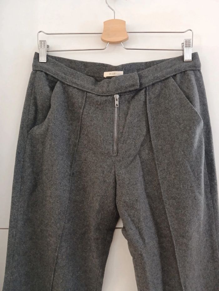 Pantalon droit en laine By Zoé gris Taille 2 indiqué thème wild 60% laine Taille 40 estimée à confirmer avec les mesures Mesures Taille 40cm De la taille à l'entrejambe 27cm Longueur 114cm Largeur bas 26,5cm