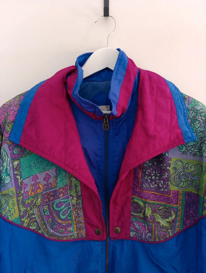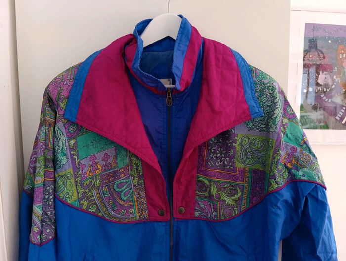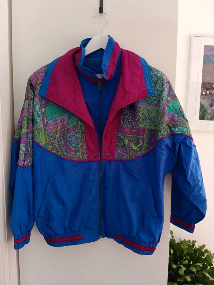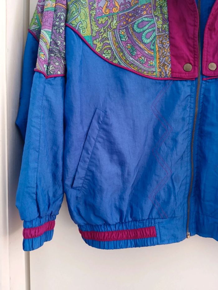 Veste de survêtement/ training vintage Violet /Fushia/ multicolore Épaulettes Taille 42 estimée à confirmer avec les mesures Mesures Epaules 53cm Aisselles 66cm Longueur 65cm