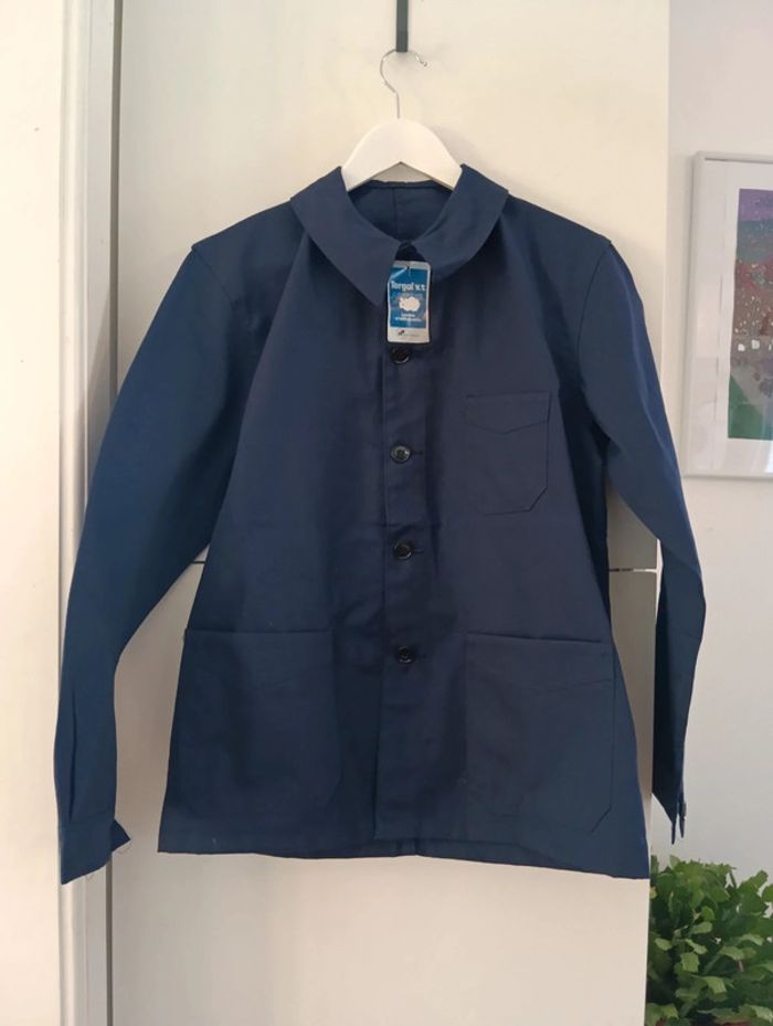 Veste chemise légère bleu de travail vintage Made in France 67% polyester 33% coton neuve Taille L estimée Mesures Epaules 45cm Aisselles 54cm Longueur 72cm