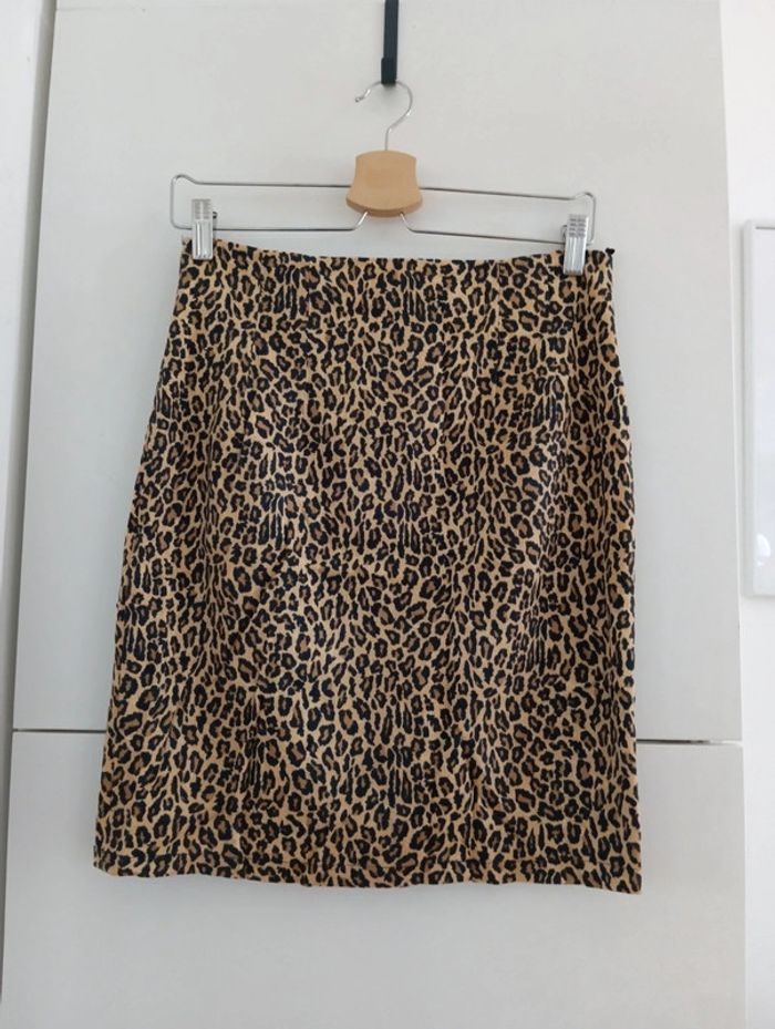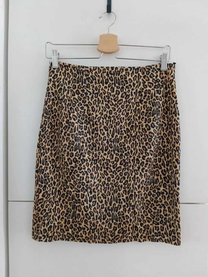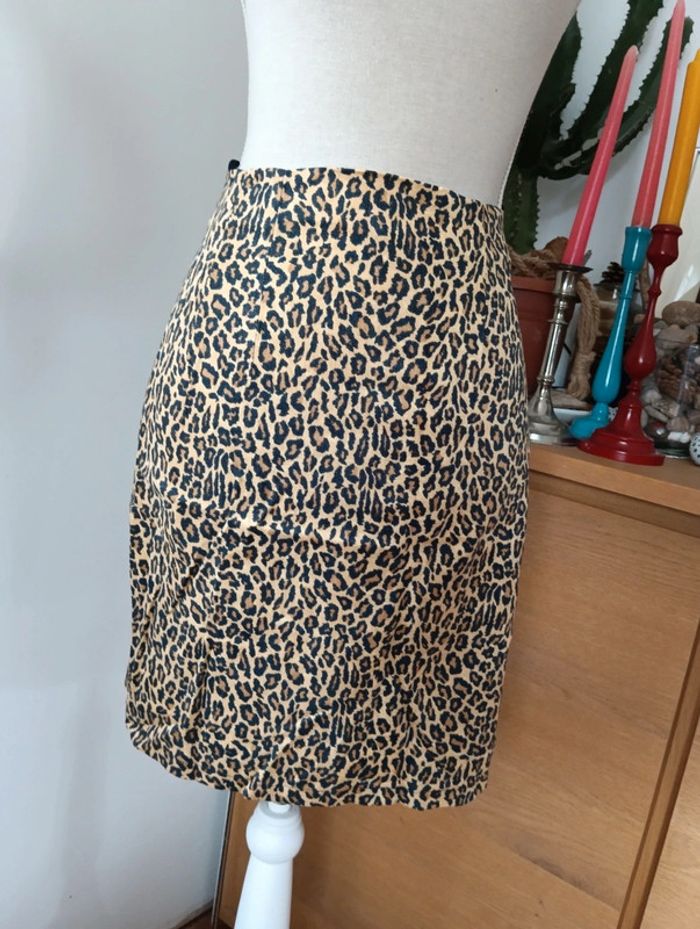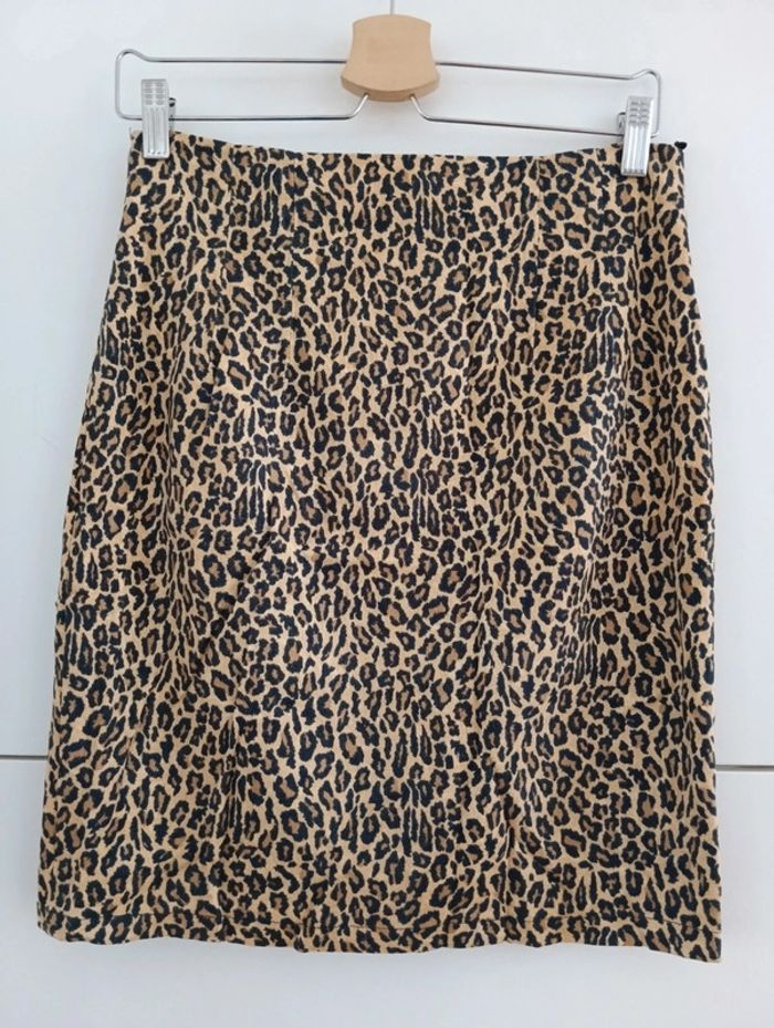 Jupe vintage tube wild léopard Taille haute Fabriquée en France. Taille 40 estimée à confirmer avec les mesures. Matière souple et extensible. 57% viscose 41% coton Lycra 2% Mesures Taille 36cm Longueur 50cm