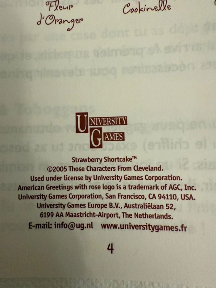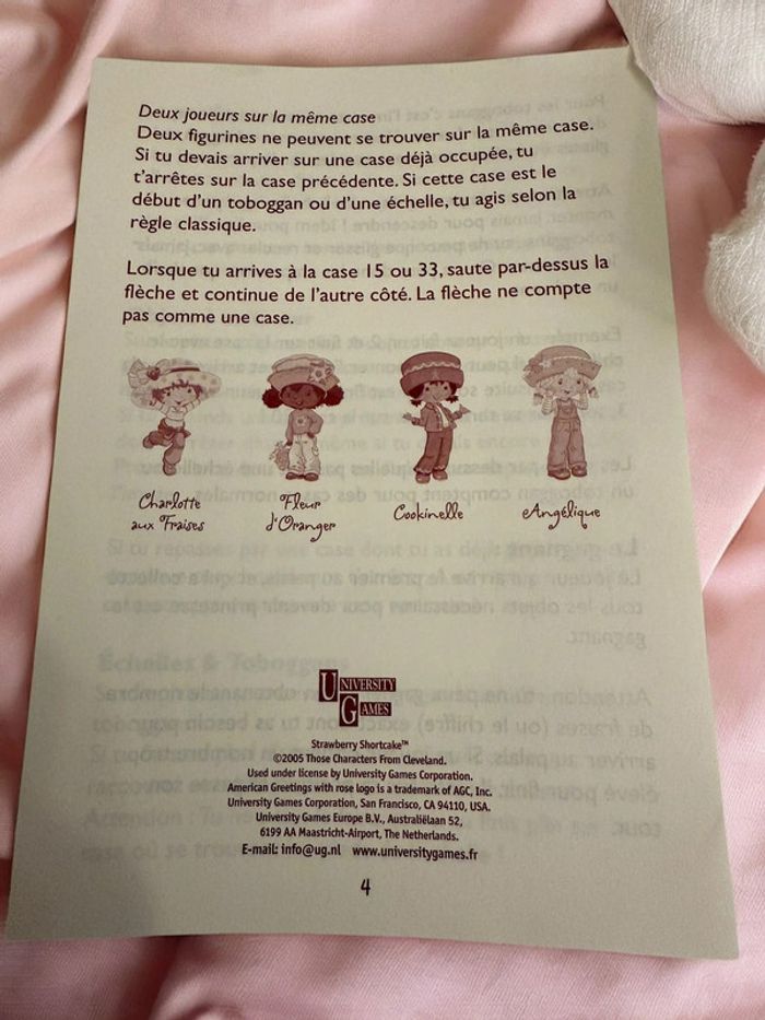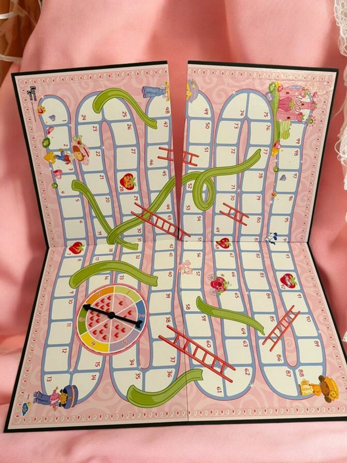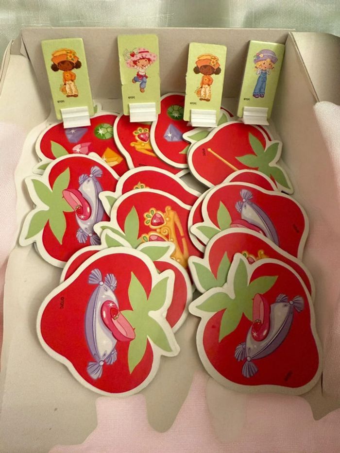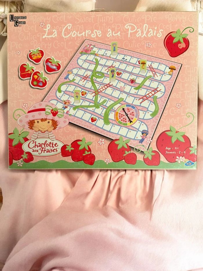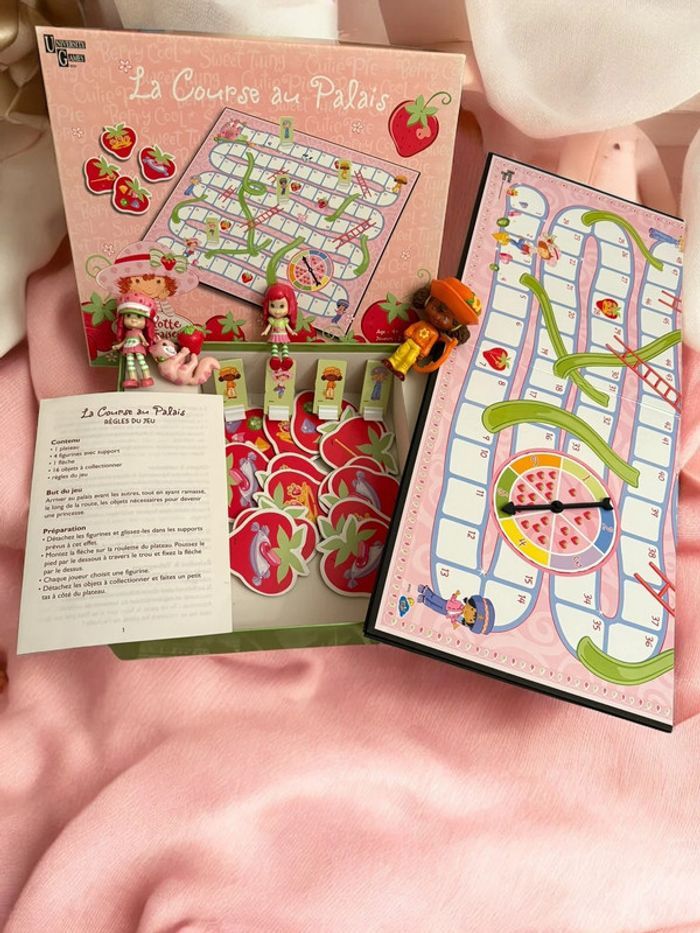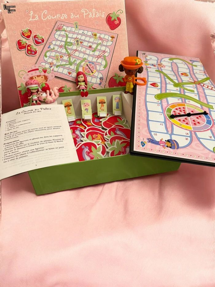 Lot Charlotte aux Fraises (Strawberry Shortcake) comprenant le jeu de société vintage “La Course au Palais” (2001) et des poupées originales 2001–2008. Ensemble recherché par collectionneurs et amateurs de jouets rétro. Jeu de société Charlotte aux Fraises – La Course au Palais (2001) • Jeu officiel Strawberry Shortcake • 2 à 4 joueurs, dès 4 ans • Contenu complet : • Plateau de jeu double face • 4 figurines avec supports • 2 dés • 16 objets à collectionner • Règle du jeu en français • Boîte d’origine en très bon état Bonus inclus dans le lot • 2 poupées Charlotte aux Fraises 8 cm (2008) • 1 poupée Fleur d’Oranger / Orange Blossom McDonald’s 10 cm (2005) • 1 chat Pralinette original (2003) État • Jeu complet, très bien conservé • Pièces en bon à très bon état • Boîte en excellent état, sans déchirure ni moisissure • Photos détaillées disponibles • Envoi soigné Lot cohérent, difficile à reconstituer séparément. Idéal collection Strawberry Shortcake vintage, jouets années 2000, poupées rétro.