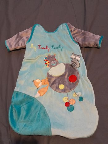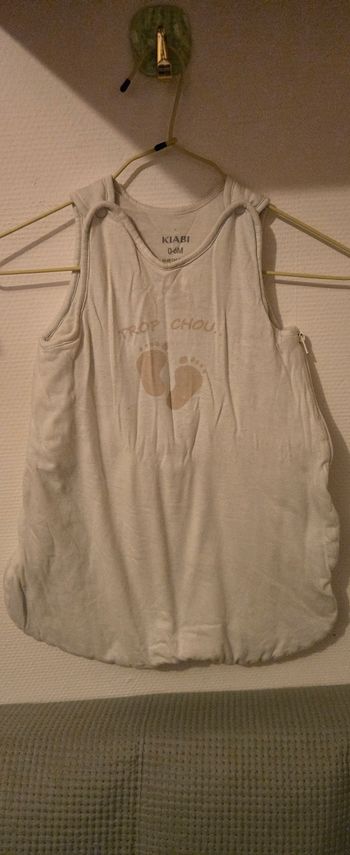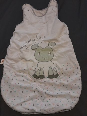 Gigoteuse bébé Taille 6-18mois Gémo Fermeture sur le côté Manche amovible par pressions Très bon état, très peu utilisé (utilisé 1 ou 2 fois car bébé bouge de trop la nuit) Acheter 29€ chez Gémo