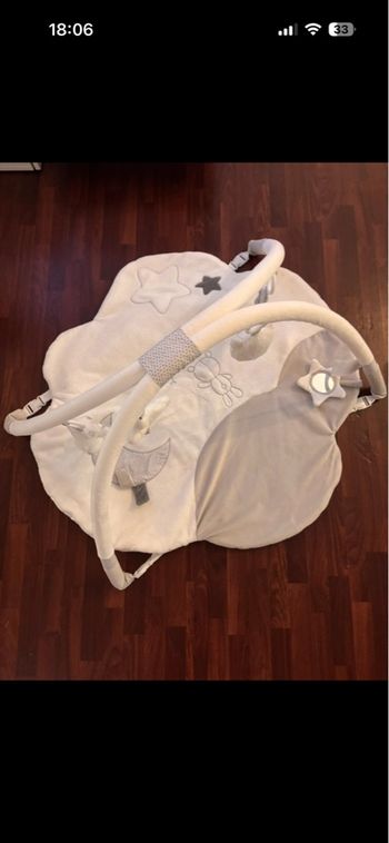 Le Touch & play mat Sophie la girafe est un matelas interactif ludique et très confortable, qui va accueillir douillettement bébé l'amuser et éveiller bébé Plusieurs modes de jeu 3 en 1 : Mode découverte: bébé apprend 6 bruits d'animaux différents juste en les touchant (chien, chat, oiseau, souris, sophie la girafe, canard) Mode musical: 6 mélodies amusantes et entrainantes à découvrir quand bébé appuie sur les animaux Mode orchestre: Do, ré, mi, fa, sol, la, si, do, bébé créé ses propres musiques avec les 8 notes de la gamme Réglage du volume sonore. Age: 0 m + Taille 100cmx100cm Très bon état Prix d'achat 49,99€