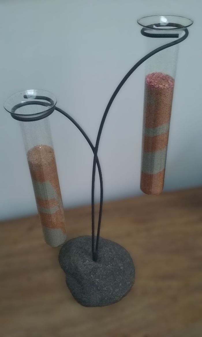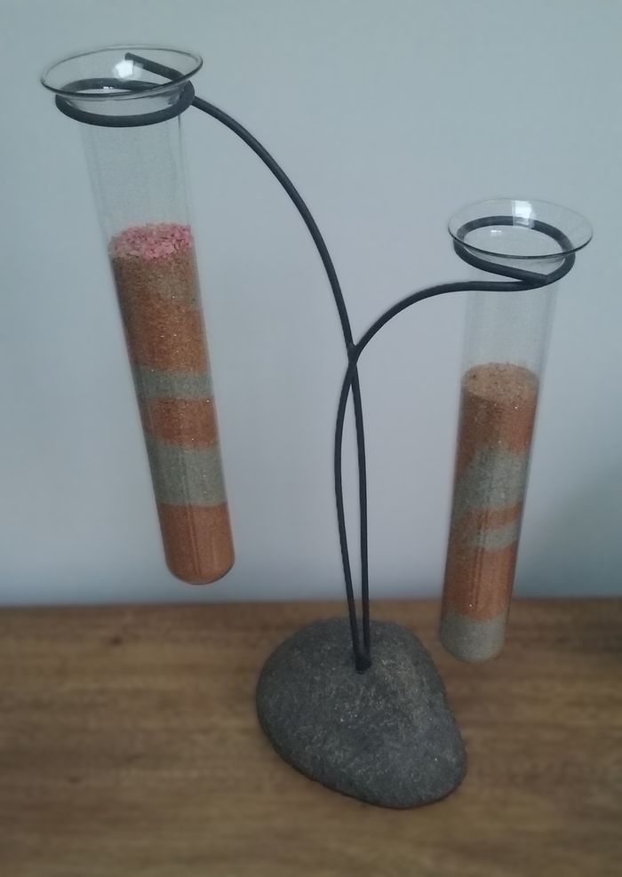 À l'origine, il s'agit de 2 soliflores que nous avons remplis de sable décoratif mais si vous le souhaitez, il suffit de les vider et d'y mettre de jolies fleurs! Dimensions : 32X16,5 cm
