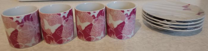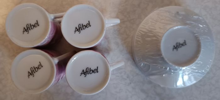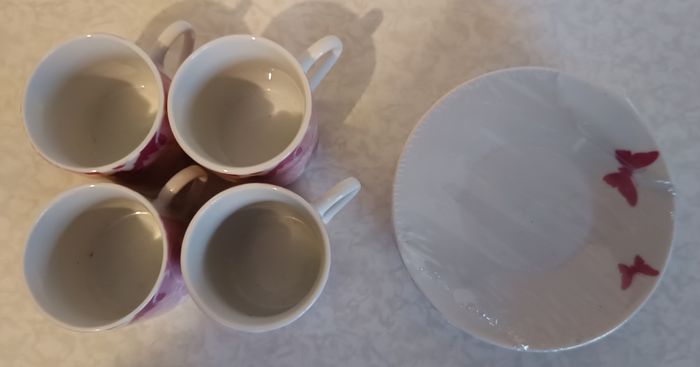 LOT 4 Tasses Café et soucoupes AFIBEL NEUVES motif papillons roses - photo numéro 1