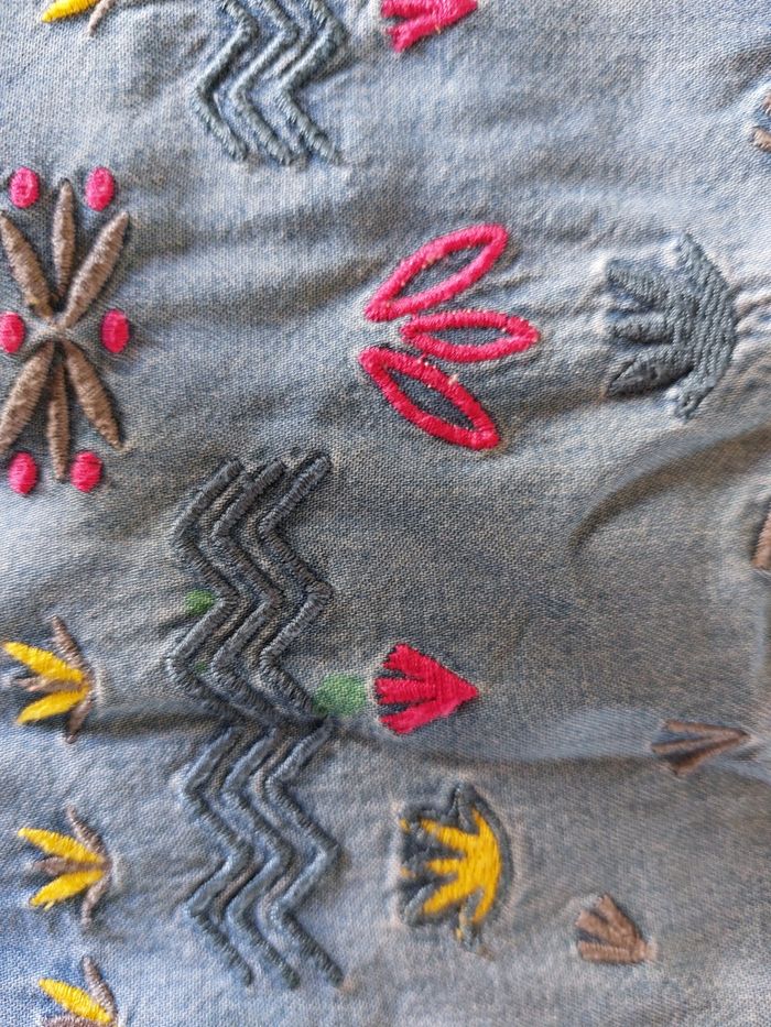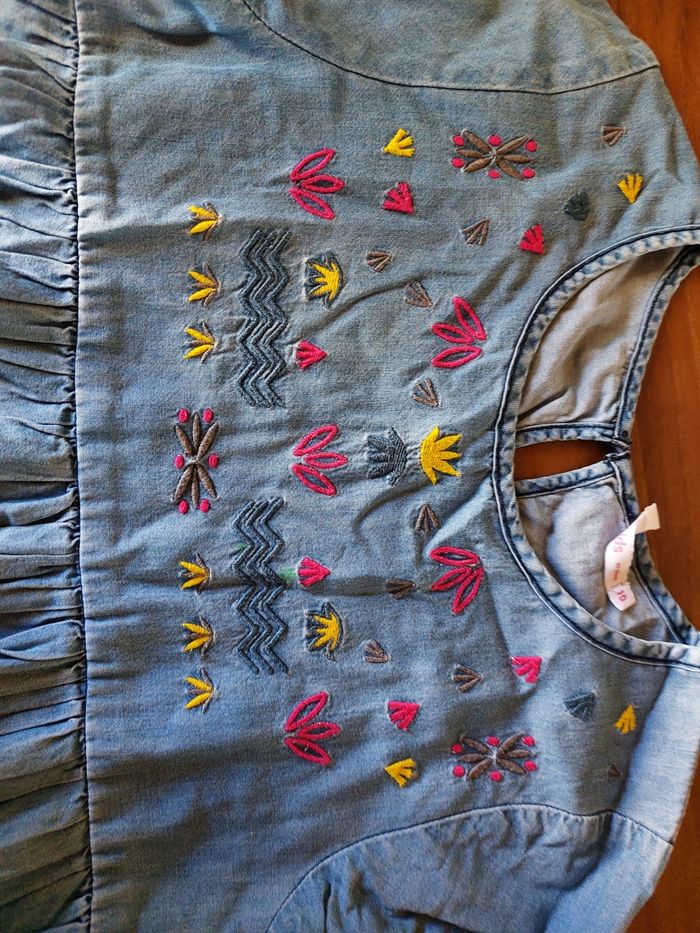 Manche 3/4 avec broderie sur le devant. Une petite tâche (voir photo) Porte mais en bon état