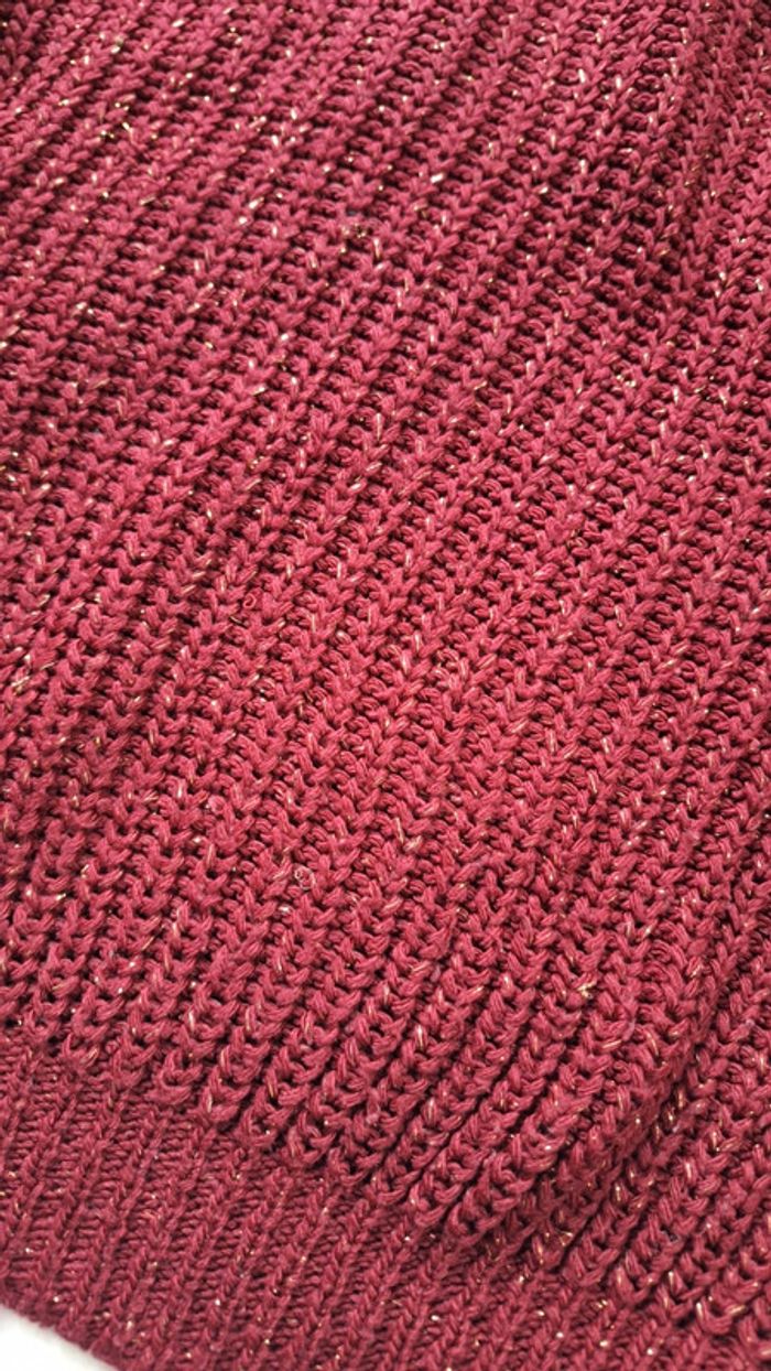 Pull manches 3/4 bordeaux paillete taille S - photo numéro 2