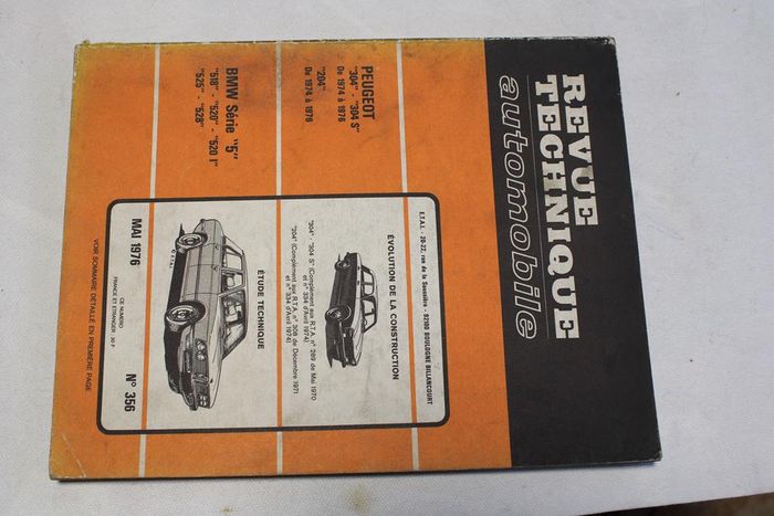 Revue technique traitant de l'entretien et de la réparation des BMW série 5 Modèle : 518, 520, 520I, 525, 528 Revue technique en bon état. Elle a servi. Traces d'usures sur la couverture. Réponse rapide Envoi soigné dans les meilleurs délais