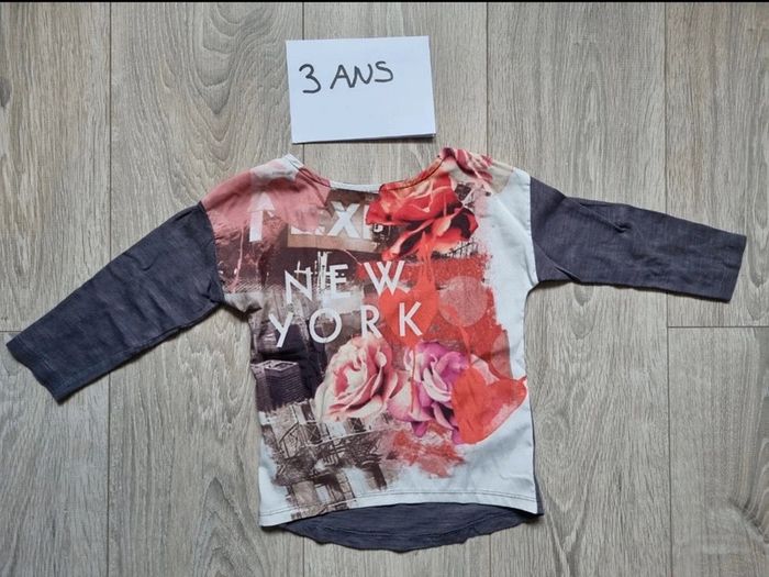 Tee-shirt manches longues gris motif "New York" En très bon état. 3 ANS. #fille3ans_sev_38