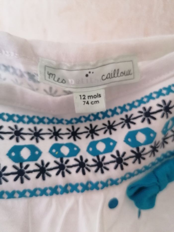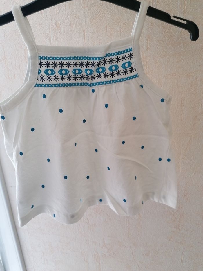 Joli débardeur Mes Petits Cailloux 12 mois bleu et blanc à pois avec un petit noeud