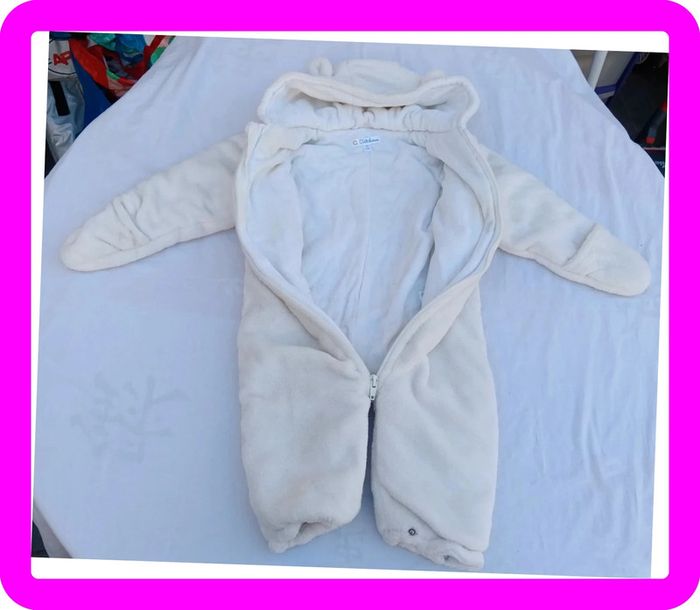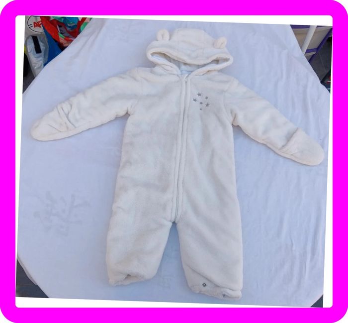 Fermeture éclair, moufles intégrées. Oreilles sur la capuche. Taille 71 cm Manque les chaussons #pitou83710garcon9mois #pitou83710fille9mois