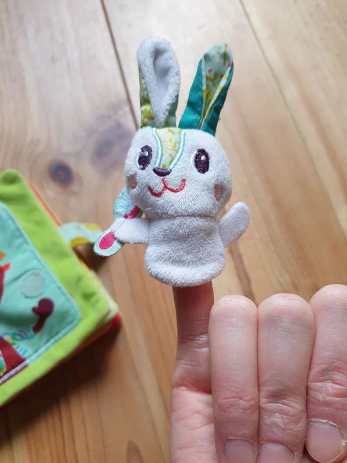 Livre texturé avec marionnette a doigt lapin Mini livre Louise la licorne Hochet Louise la licorne