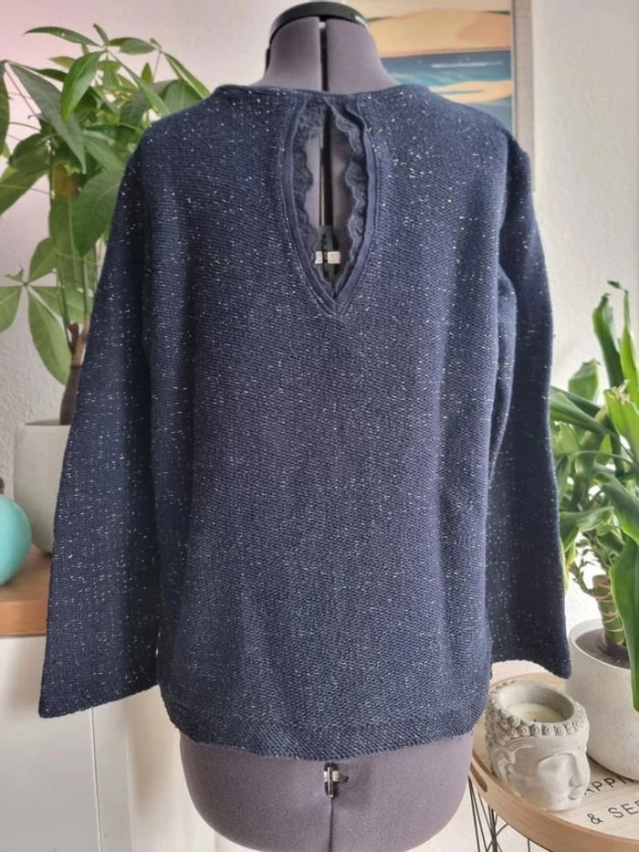 Pull bleu marine avec fils doré Naf naf taille L 40 - photo numéro 3