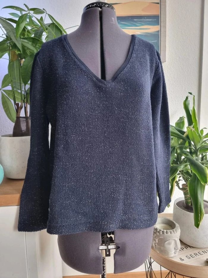 Pull bleu marine avec fils doré Naf naf taille L 40 - photo numéro 1