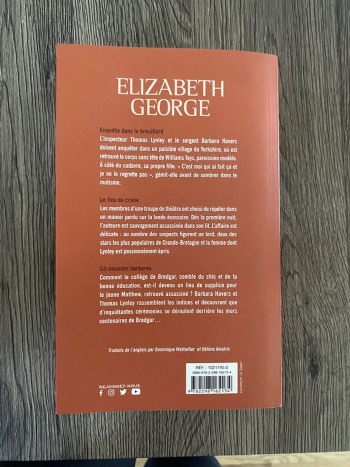 Livre « Enquête dans le brouillard » « Le lieu du crime » et « Cérémonie barbares » d’Elizabeth George Livre en très bon état Plusieurs récits dans le livre 🌸 N’hésite pas à m’envoyer un message en cas de question 🌸 ⚠️ Pas de Vinted and go ⚠️