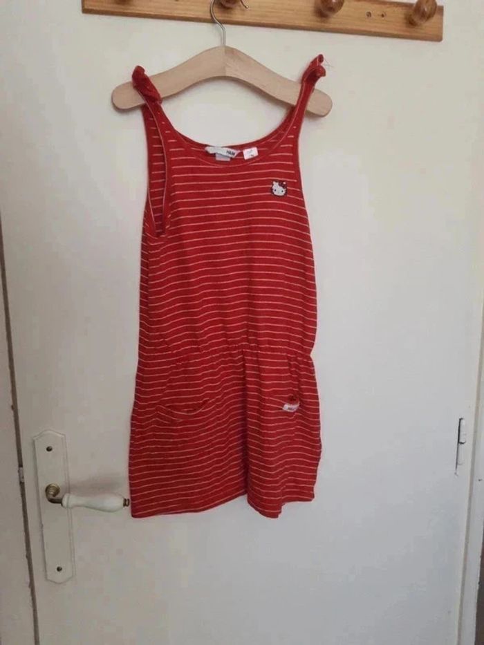 Robe marinière été 6/7ans Hello kitty Rouge blanc H et m Très bon état 2 poches devant Robe légère été #6anscatalina8 #7anscatalina8