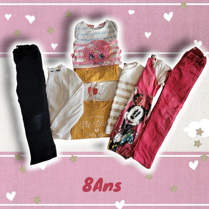 Lot de 9 vêtements tâchés ou abîmés mais qui peuvent encore être portés pour traîner, faire de la peinture... MAISON NON FUMEUR 🚭 #lotangelinamandine #8ansfilleangelinamandine #okaidi