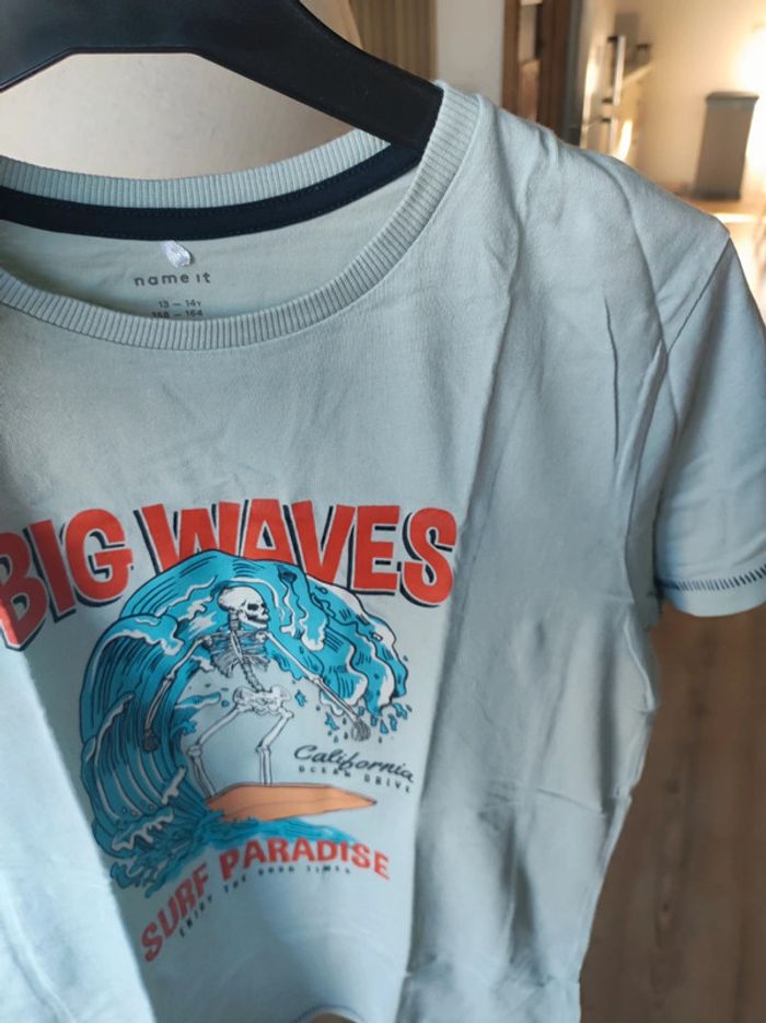 T shirt bleu ciel/ vert clair Name It 13/14 ans. Petite tâche voir dernière photo #elomatgarcon13ans #elomatgarcon14ans