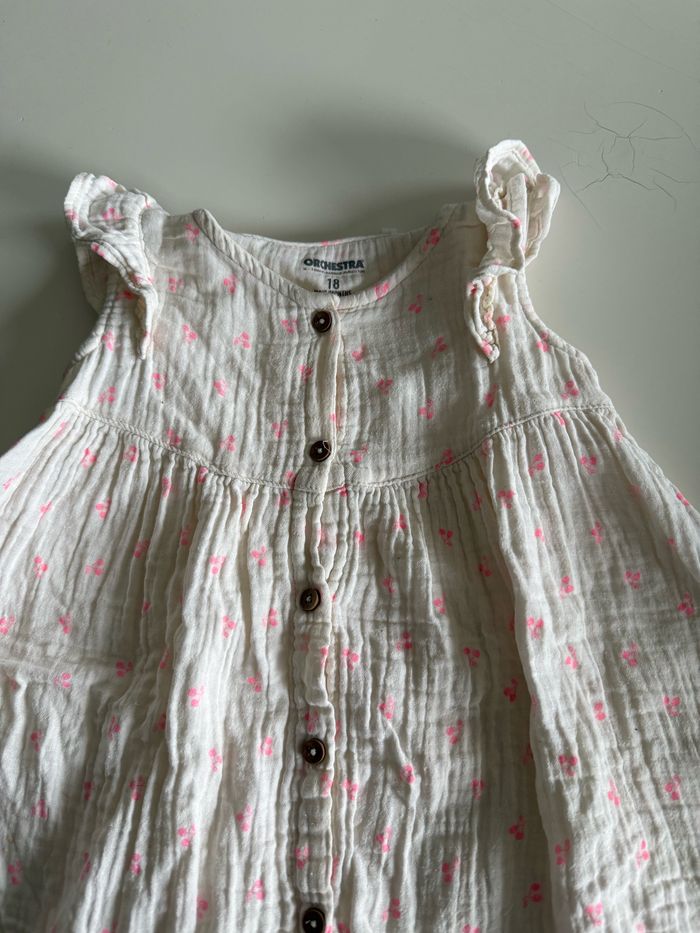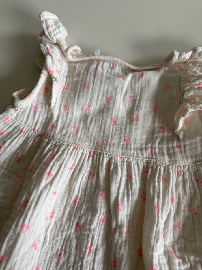 Robe en double gaz motif cerise (petite taches visibles sur photo)