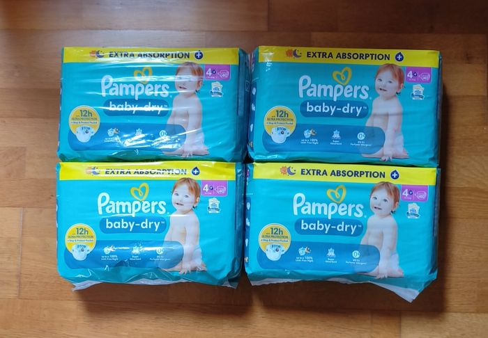 4 paquets de couches Pampers baby dry taille 4+