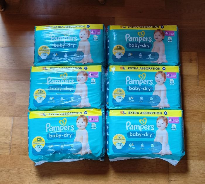 6 paquets de couches Pampers baby dry taille 4+. Total de 240 couches