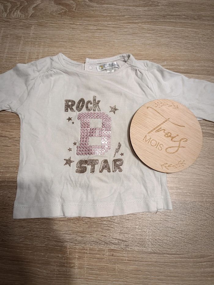 🌺 Marque : Kitchoun 🌺 Taille : 3 mois 🌺 Haut manche longue blanc avec sequins #deborahcog_3moisfille