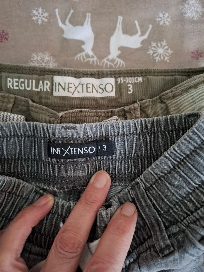 Bonjour 👋, lot 2 shorts "Inextenso" taille 3 ans, couleur gris et kaki, élastique réglable à la taille pour le short kaki, 2 poches devant et derrière pour le short gris, 4 poches devant pour le short kaki. Très bon état. 6€ (vous pouvez choisir 1 seul short)