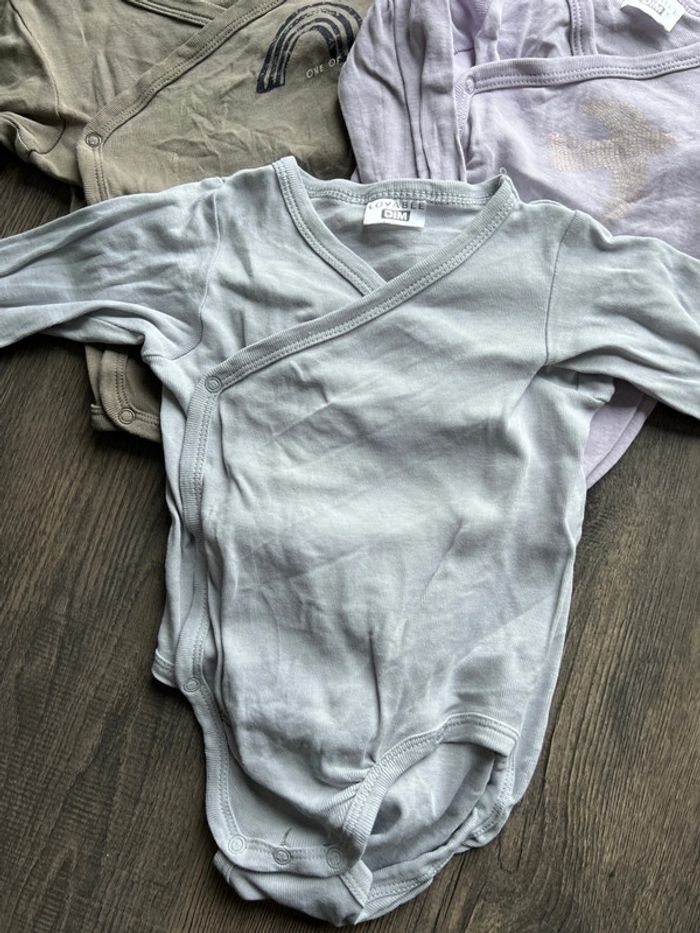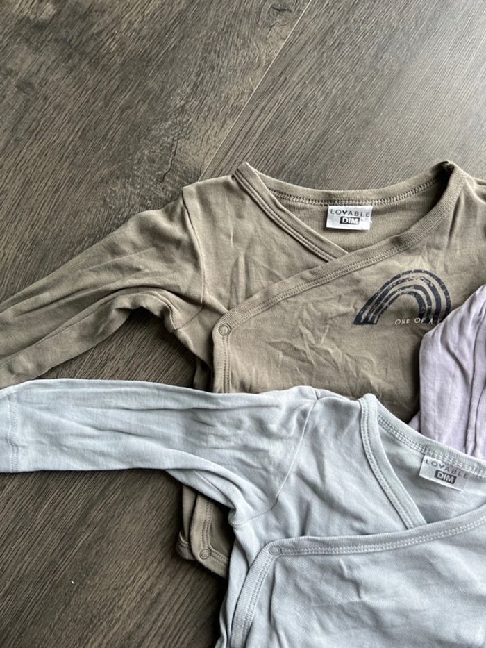 Vend lot de 3 bodys Très bon état mise à part le bleu qui fatigue au niveau des pressions Dim 3-6 mois