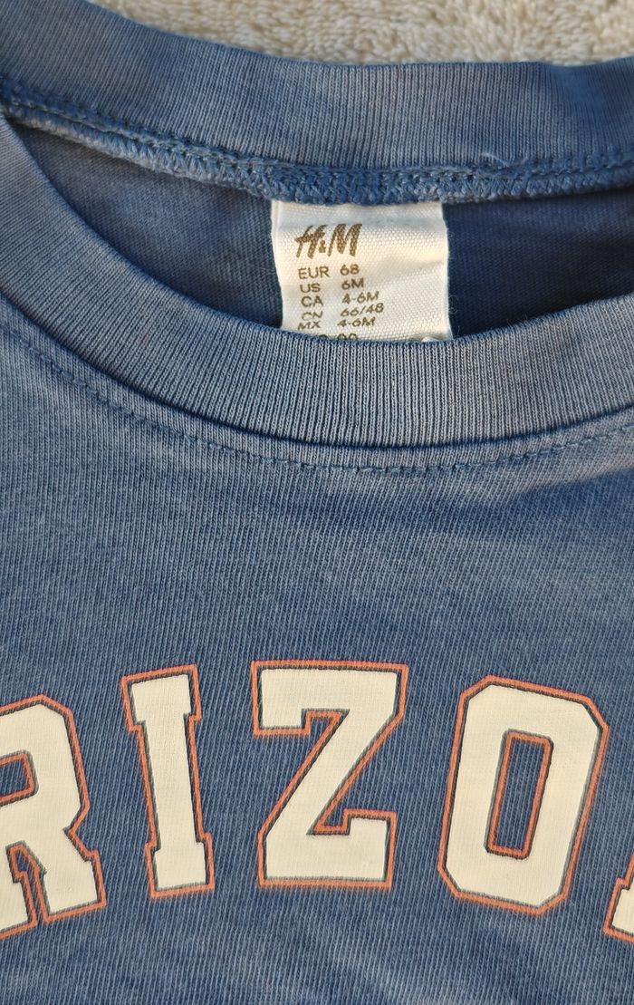 Tee-shirt bleu avec texte "ARIZONA" et lettre "A" Taille 4-6 mois /68 cm Marque H&M