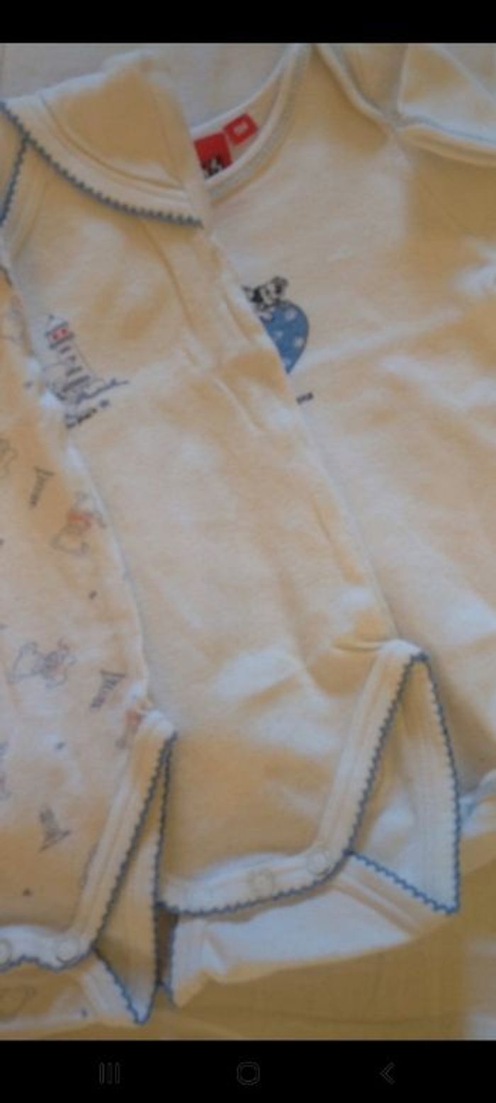 Lot de 3 bodies manches courtes : 2 blanc en 6 mois et 1 blanc dalmatiens Disney en 9 mois ( il taille plutôt 6 mois) Marque Disney et autres