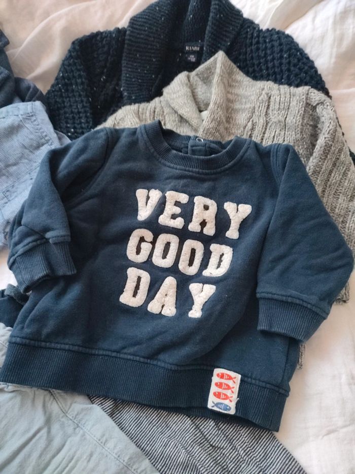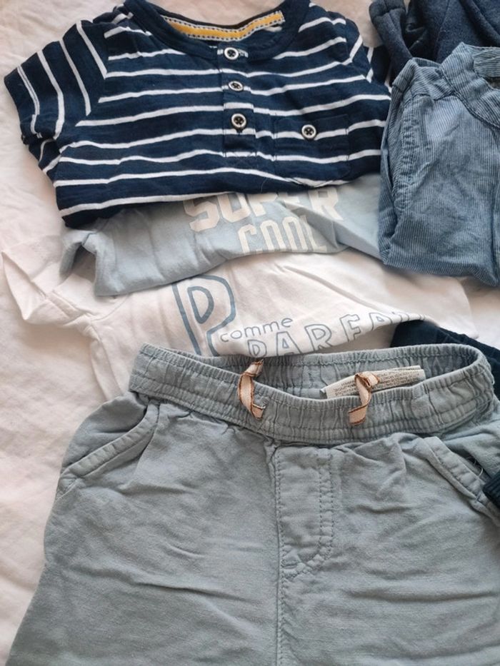 Gros lot de 6 mois se compose : - 2 pantalons - 3 tee-shirt - 1 pull - 1 chemise - 2 gilet - 1 veste Le tout très peu porté #taille6mois #bebegarcon6mois