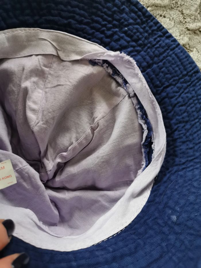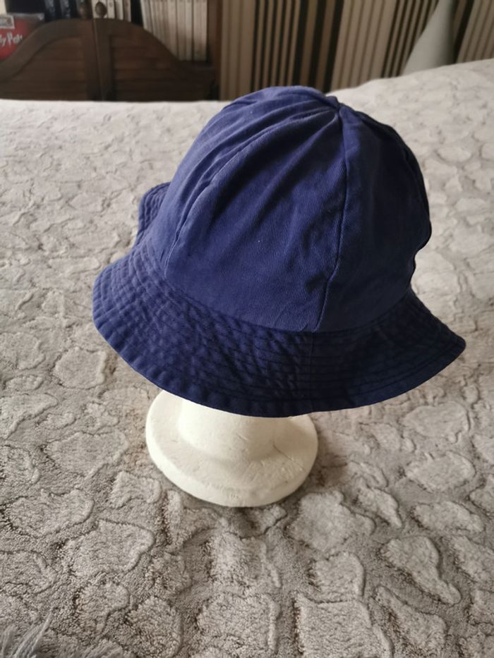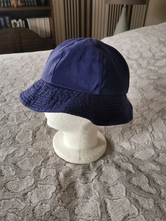 Bob bleu marine en coton vintage, made in Hong Kong, taille 57 cm, 100% coton, en très bon état, juste la couleur bleu marine a déteint sur la doublure au lavage, ne pas laver à 40°, mais bien en dessous. Hauteur 14 cm, poids 61g. #bobbleu #bobcoton #bobvintage #bob57cm #chapeaudete #chapeaucoton #chapeauvintage